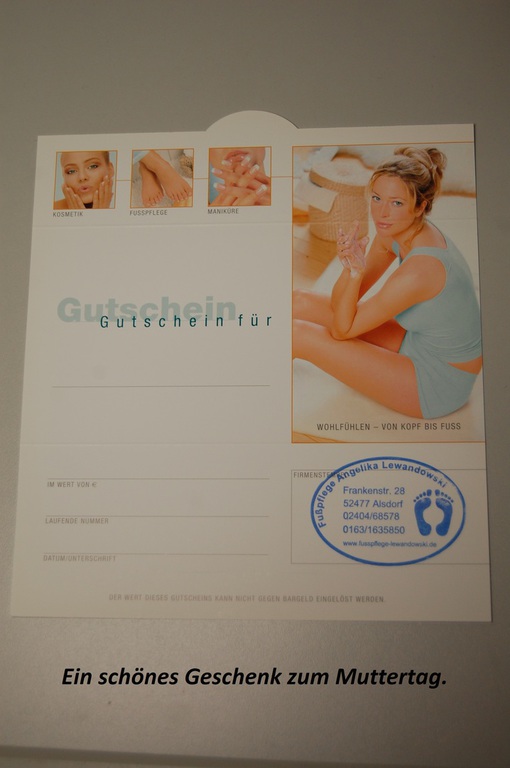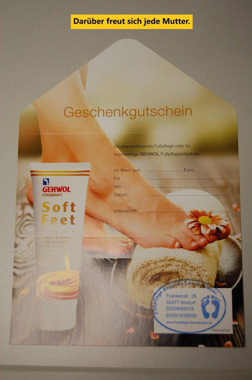 Ebenso können Sie bei mir Gutscheine und hochwertige Pflegeprodukte erwerben.